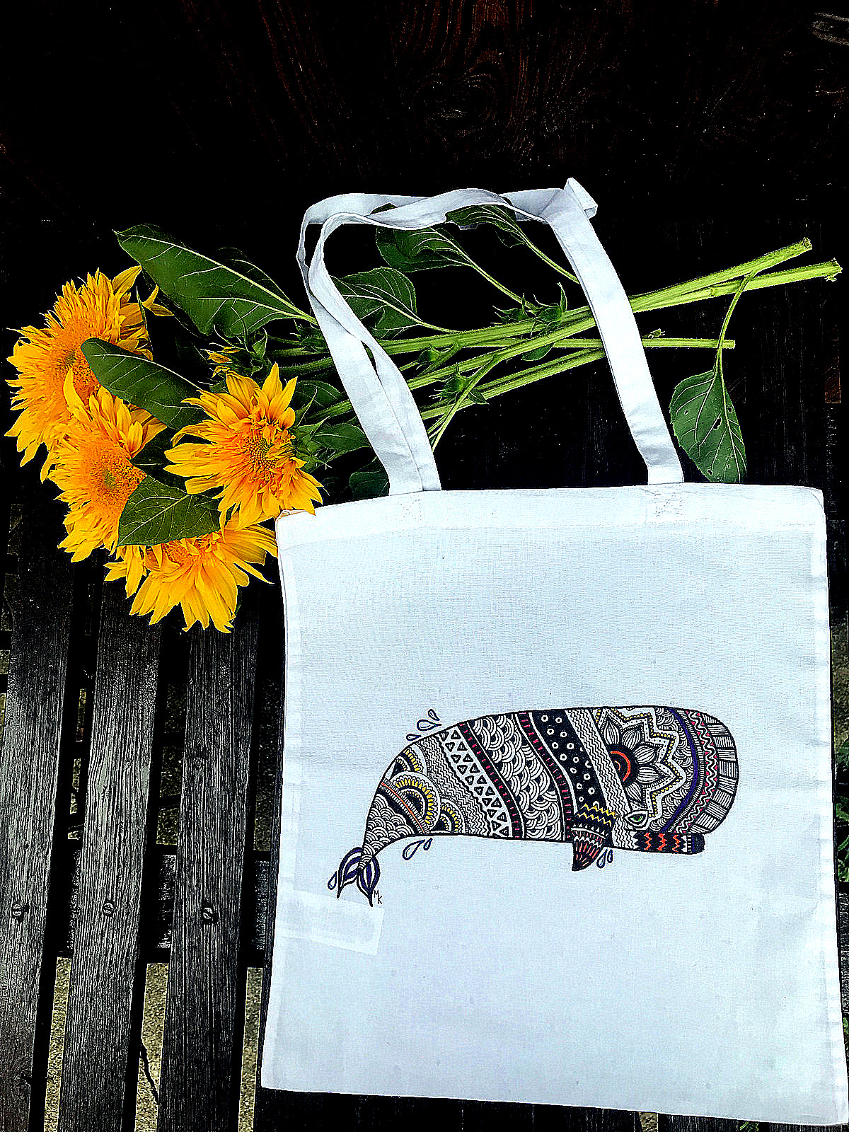 Vlastnoručně kreslené bavlněné plátěné tašky.